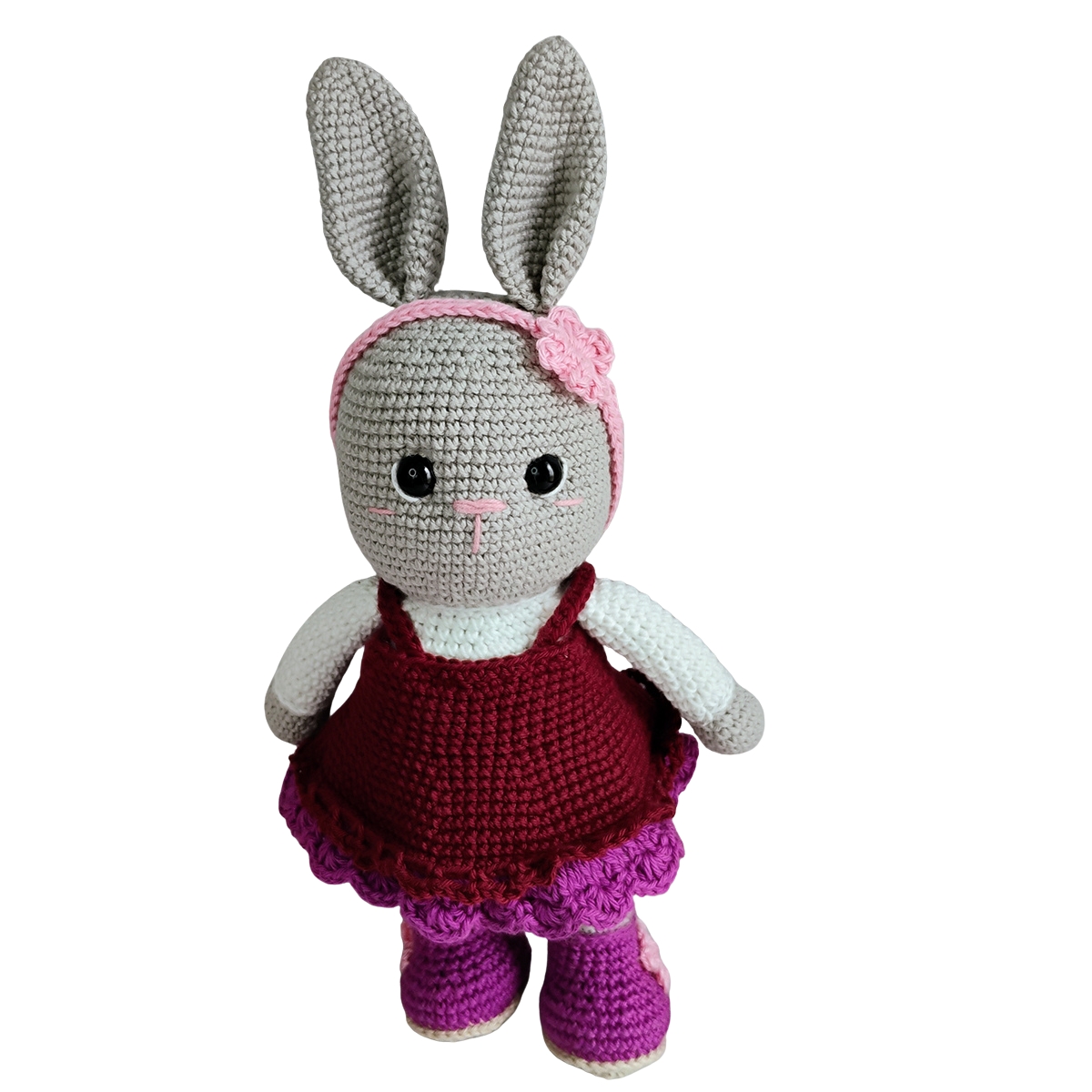 Esta conejita es ideal como regalo para decorar habitaciones infantiles o para acompañar a los más pequeños en sus aventuras. Su tamaño es perfecto para abrazar
