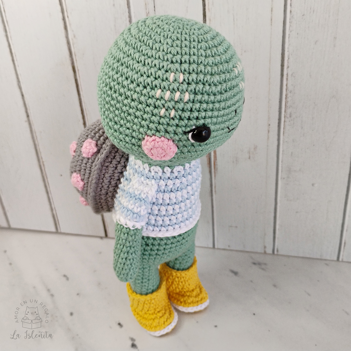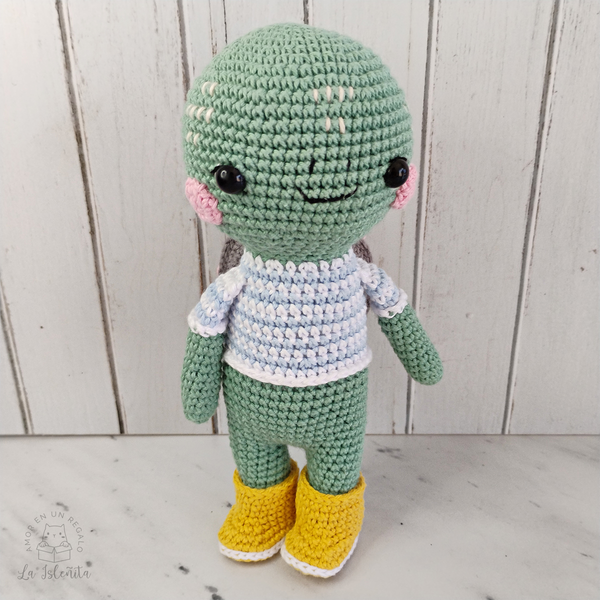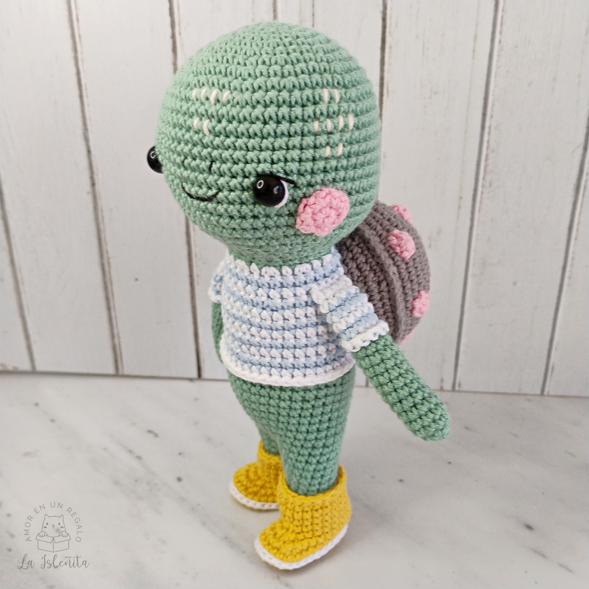 Tortuguita amigurumi de diseño suave y atemporal, pensada para transmitir calma y ternura.